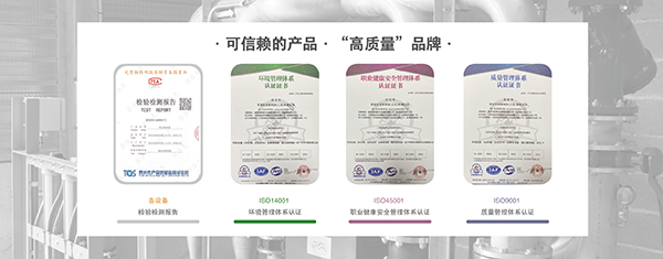 公司通过ISO9001质量管理体系认证;通过ISO14001环境环境管理体系认证;通过ISO45001职业健康管理体系认证