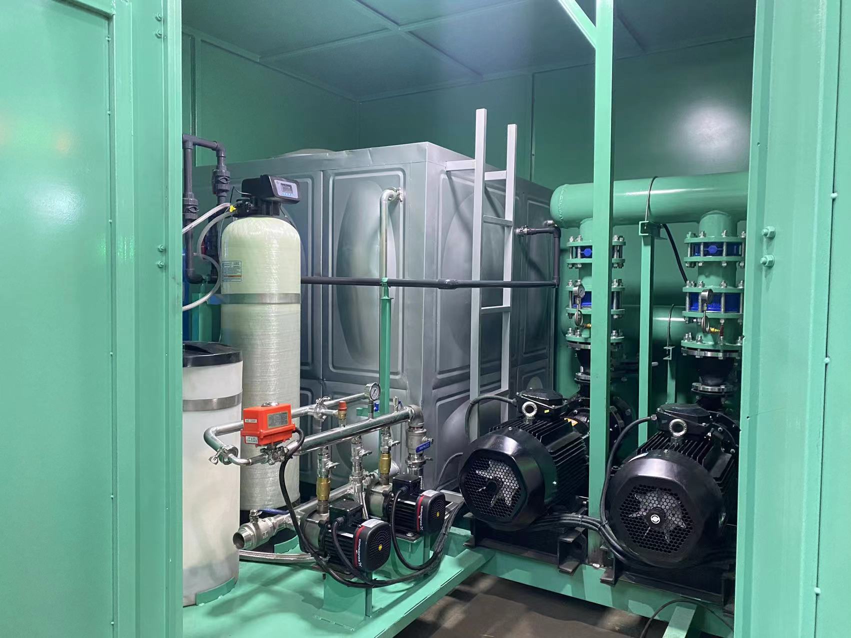 高集成化设计:将传统空调机房内的水泵、阀门、过滤器、膨胀罐、补水阀等集成到一个箱体内,减少了占地面积,提高了美观度和安装便利。