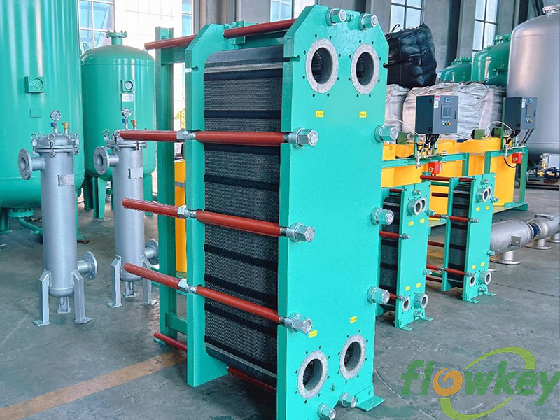 板式换热器由带波纹形状的金属板片组装而成,板片之间通过密封垫片进行密封并导流,形成冷、热两个流体通道。冷、热换热介质分别在各自的通道中流动,与相邻的板片进行热量交换,从而达到用户所需的温度。这种设计使得板式换热器具有结构凑、占地面积小、传热效率高等优点。